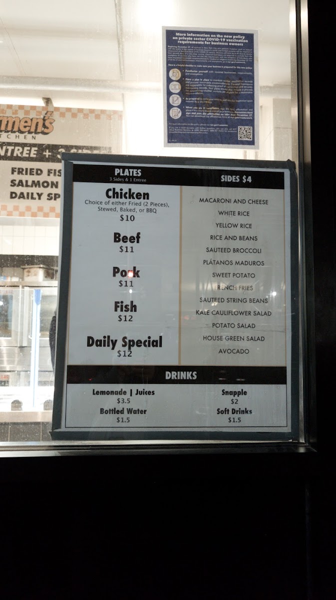 Expect a variety of well-loved dishes such as fried seabass, baked salmon, pulled pork, and stew chicken, all of which pair naturally with a choice of both fresh and warm sides. From crisp house salads and avocado slices to warm collard greens, macaroni and cheese, and sweet plantains, the sides complement the main plates with familiar, comforting touches.